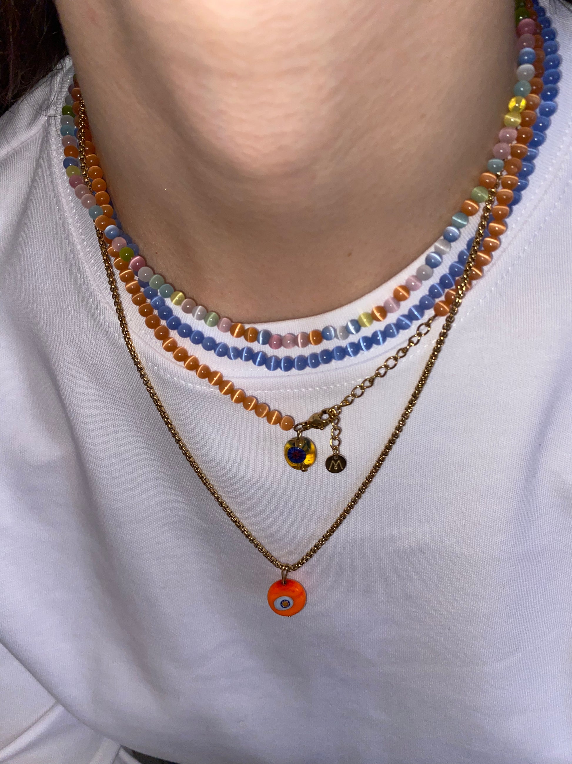 🌈🌈🌈🌈 Colorful cat's eye stone necklaces and bracelets. The stone is named for its “chatoyancy,” a magical, undulating shimmer visible on its surface. In the East, cat’s eye stone is believed to be a talisman that protects from life’s dangers.