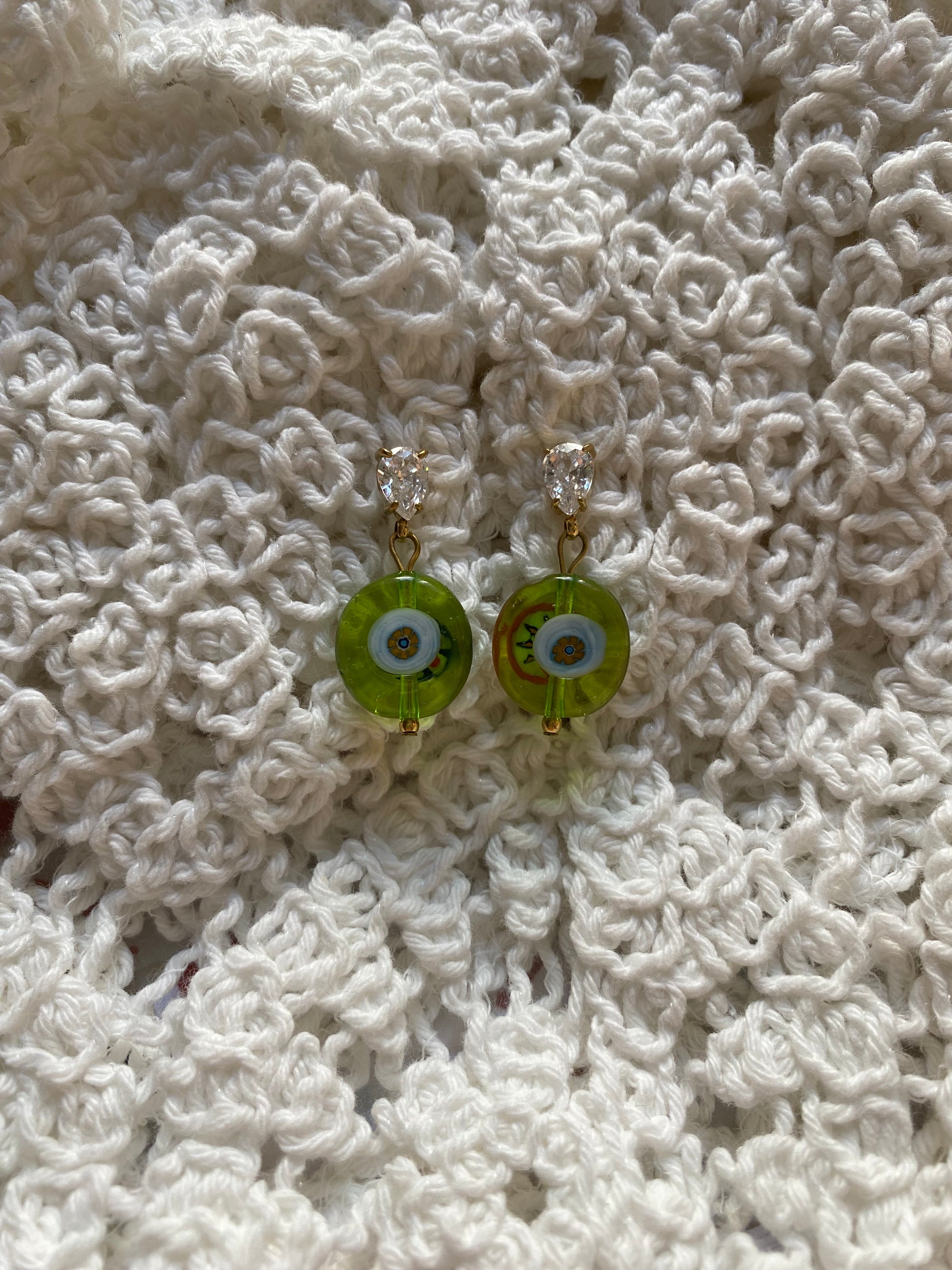 Per questo modello di orecchini verranno usate le murrine grandi montate su orecchini in acciaio inossidabile placcato oro con zircone a goccia ✨ perfetti per dare luce ai tuoi outfit!!